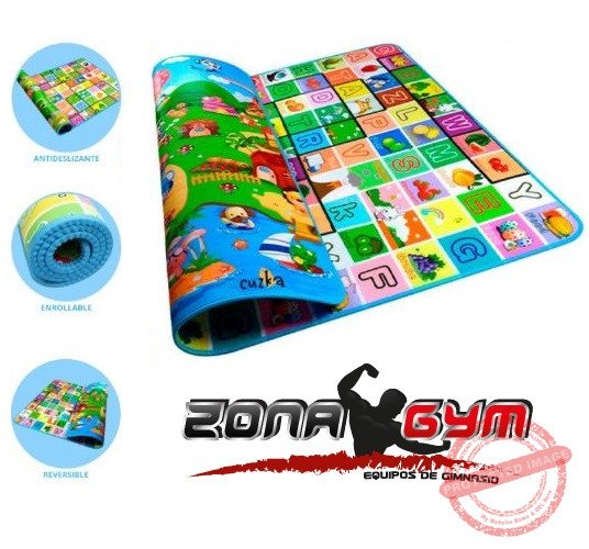 Alfombra de gateo infantil diseñada para proteger y estimular a los bebés durante sus primeras etapas de movimiento. Fabricada en material antifluidos, fácil de limpiar y disponible en tres tamaños para adaptarse a diferentes espacios.