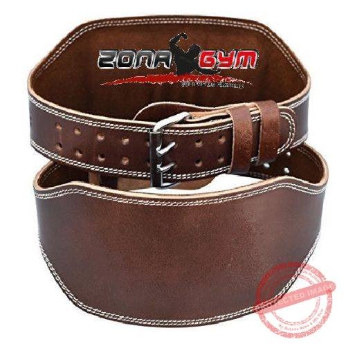 Cinturón de cuero genuino para levantamiento de pesas y entrenamiento intenso. Reforzado con doble costura, remaches metálicos y hebilla de seguridad. Ofrece soporte lumbar esencial para ejercicios como peso muerto, sentadillas y press militar.