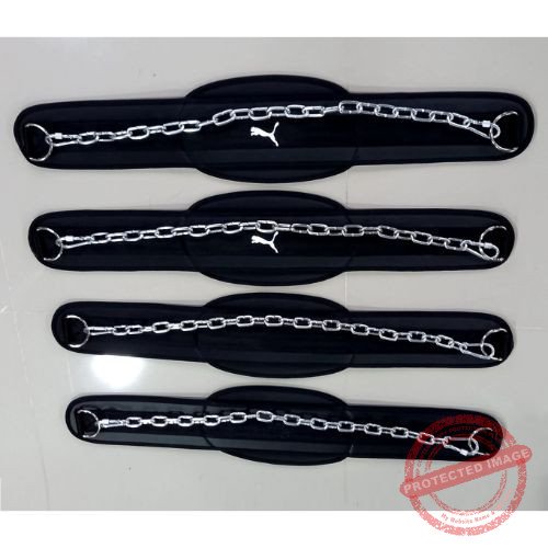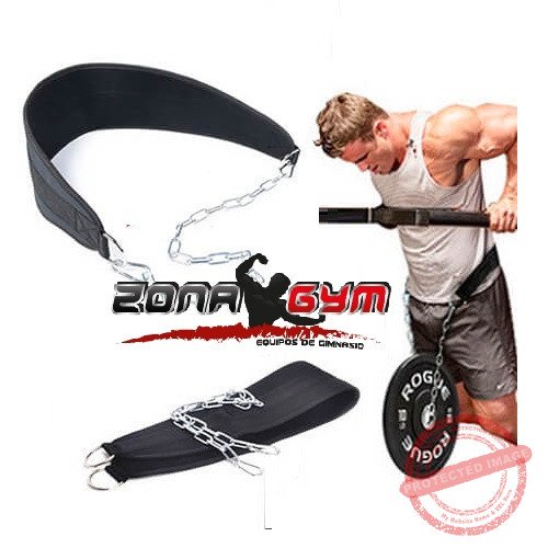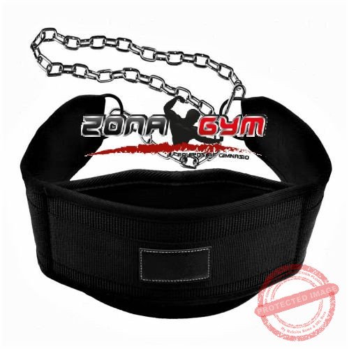 Cinturón lastrado con cadena de acero para añadir peso en dominadas, dips y sentadillas. Construcción robusta para cargar hasta 200kg.