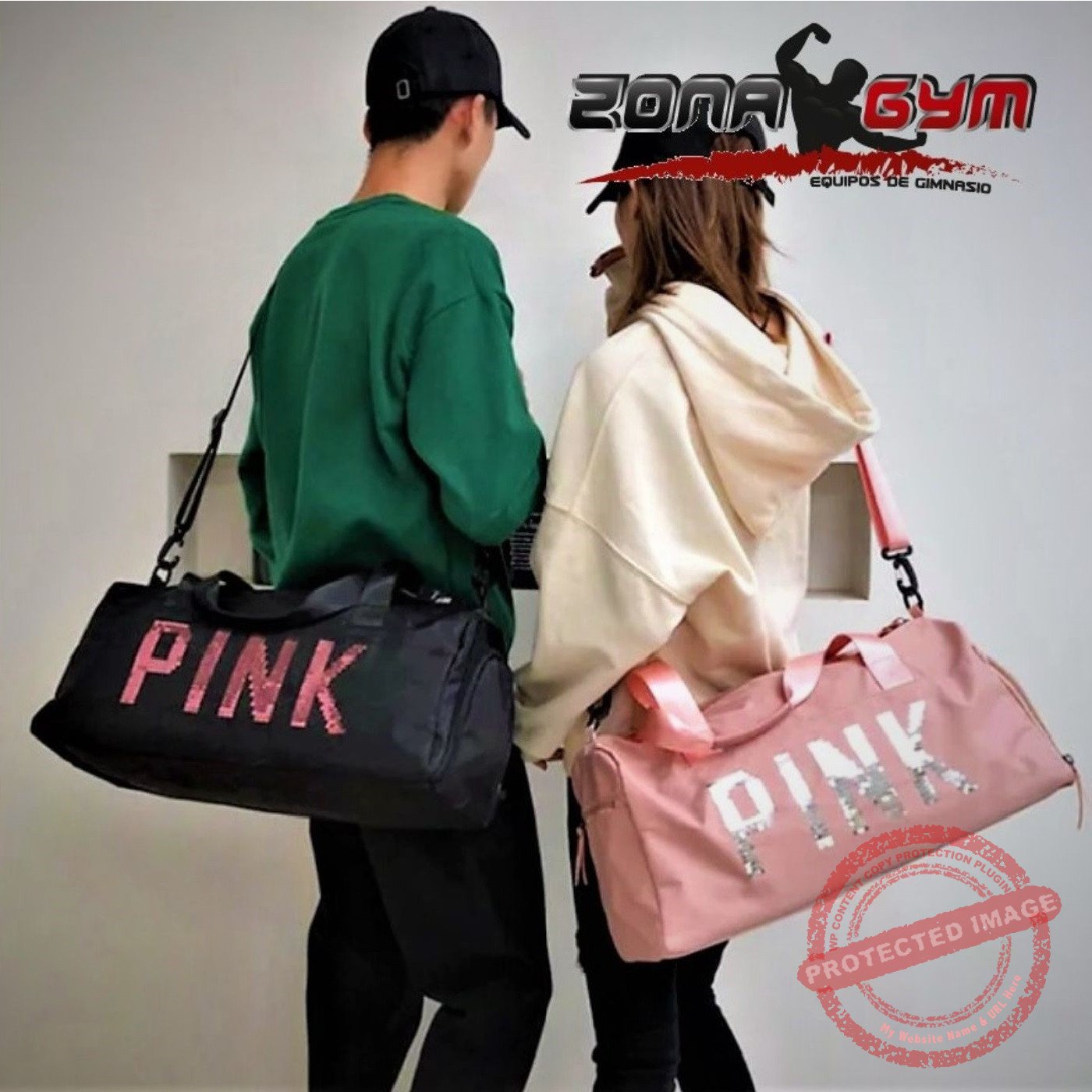 Maletas para gym color rosa de 50 x 25 cm, diseñadas específicamente con estilo femenino para transportar equipo deportivo de manera organizada, práctica y con diseño atractivo.