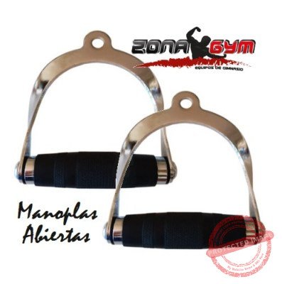 Manoplas redondas para polea. Diseño cómodo y ajustable para ejercicios de espalda y brazos.