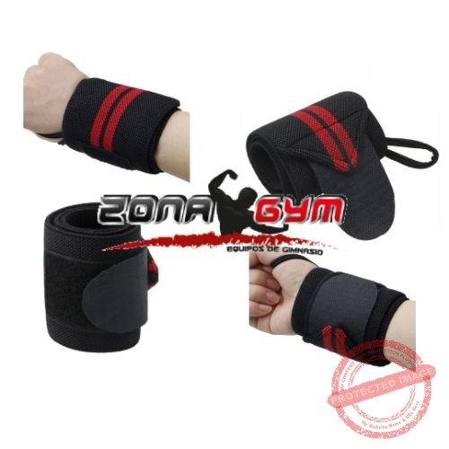 Muñequeras para gimnasio negras con rojo importadas. Soporte esencial para levantamiento de pesas, press de banca, sentadillas y ejercicios que requieren estabilidad de muñeca. Protegen y previenen lesiones.