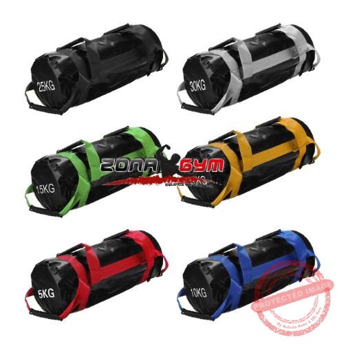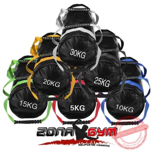Sacos de arena profesionales para entrenamiento funcional. Disponibles de 5kg a 30kg. Múltiples asas, material ultra resistente y relleno estable. Ideal para crossfit, strongman y home gym.