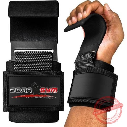 Straps con gancho entero y muñequera para levantamientos pesados. Agarre seguro que te permite enfocarte en la fuerza.